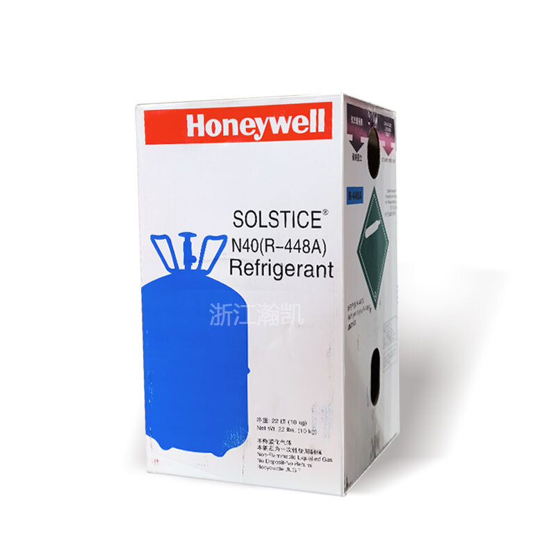 霍尼韋爾R448A制冷劑,商品名稱Solstice N40,R448A屬于ASHRAE 34 A1級(jí)(不可燃)制冷劑,不會(huì)消耗臭氧。Solstice N40(R448-A)GWP值僅為1273(IPCC,AR4),比R-404A(GWP值為3920)低65%,是R-404A和R-22的低GWP值替代品,可提升系統(tǒng)能效。